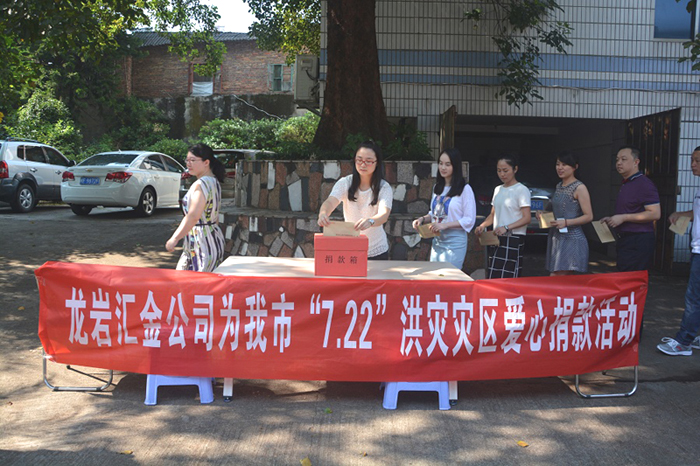 连城“7.22”洪灾的发生牵动着汇金每一位员工的心,公司第一时间由全体员工自发组织了爱心捐款活动,成立慰问工作小组赴连城开展送温暖活动,为莲峰镇莲花村受灾的低保户、五保户送去大米、食用油等和慰问金,总价值2万多元。