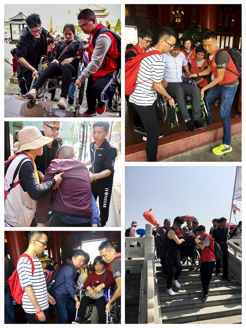 本次活动的目的就是带残疾人朋友走出家门,在三月春风里,去感受不一样的世界,激发对生活的信心。到达目的地后,全体志愿者对残友们进行“一对一”的帮扶照顾。景点里大大小小的台阶、门槛成了参观活动中最大的“拦路虎”,志愿者们发扬雷锋精神,采用 “背”“抱”“抬”的方式,顺利的完成了参观计划,尽管汗水湿透了他们的衣背,可每当看到残友们脸上灿烂的笑容时,志愿者们的内心充满了自豪,瞬间忘却了身体的疲惫。